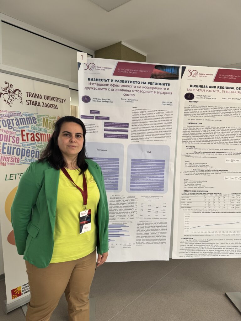 - гл. ас. Дарина Стоянова представи доклад на тема „RESEARCH ON THE EFFECTIVENESS OF COOPERATIVES AND LIMITED LIABILITY COMPANIES IN THE AGRICULTURAL SECTOR“;