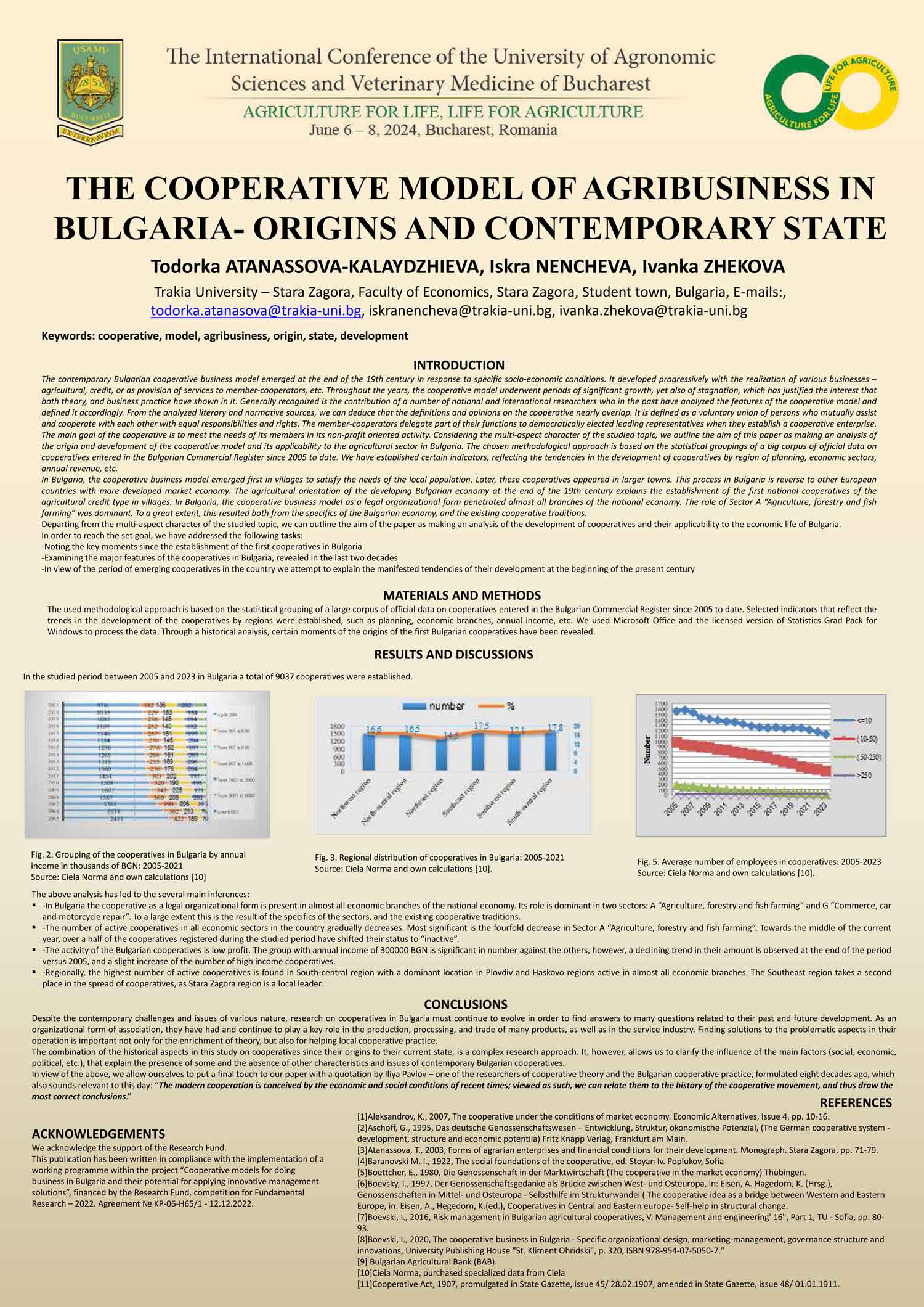• THE COOPERATIVE MODEL OF AGRIBUSINESS IN BULGARIA – ORIGINS AND CONTEMPORARY STATE“, с авторски колектив проф. Тодорка Атанасова, доц. Искра Ненчева и гл. ас. д-р Иванка Жекова;